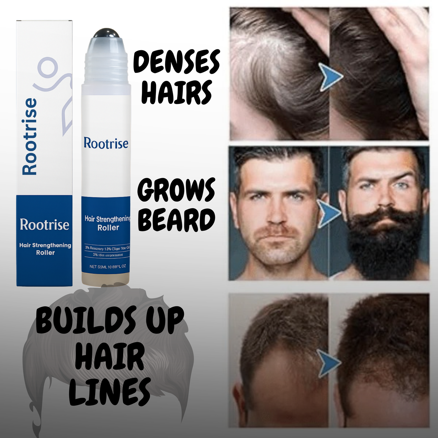 Take control of your look with ROOTRISE — where science meets self-care. Say goodbye to hair loss and uneven beard patches, and hello to renewed confidence and natural growth.